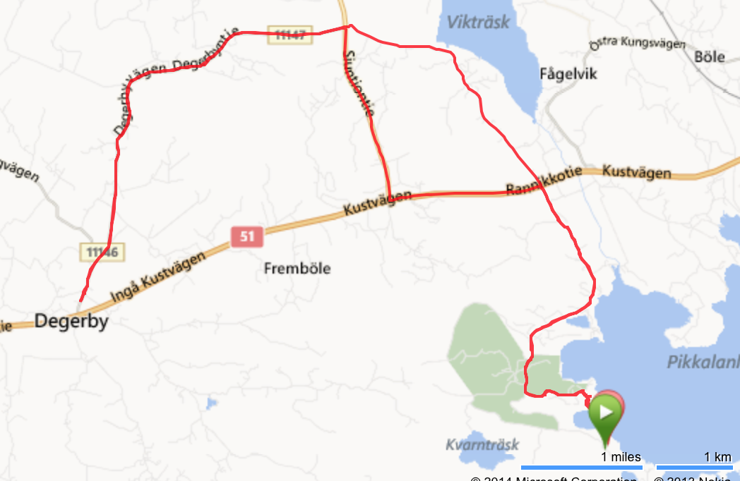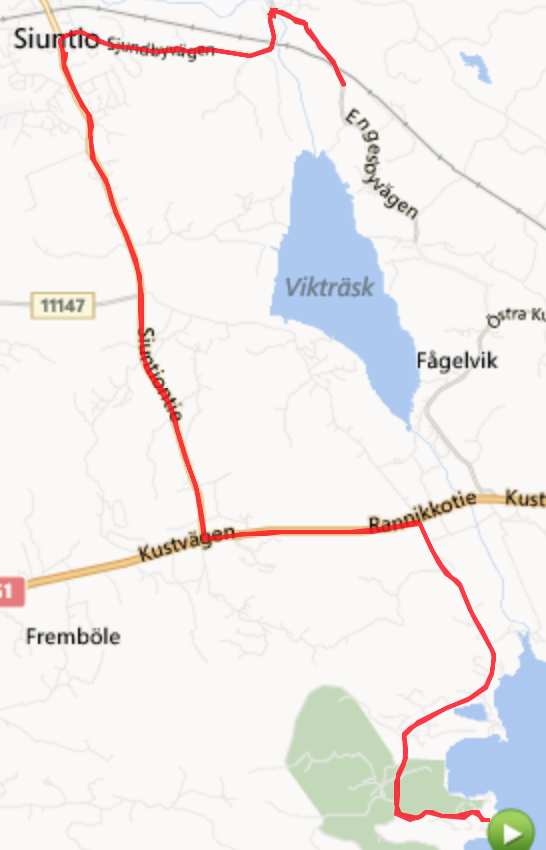 Työtehtävät veivät kahdeksi päiväksi ja yhdeksi yöksi Pickalan viereen Siuntioon. Käytin tilaisuutta hyväksi ja tutustuin lähistön tiestöön kumpanakin aamuna ennen töiden alkua. Myönnettäköön että ensimmäisen aamun lenkin aikana osallistuin pahan tapani mukaan puhelinkokoukseen kuulokenappi korvassa ajaen. Vähän meni ajaminen katkonaiseksi, kun jouduin kommentoimaan kokouksen aiheita useaan otteeseen. Kukin kommentti tietty vaati pysähdyksen, puhelimen taskusta kaivamisen ja äänivaimennuksen poiston.