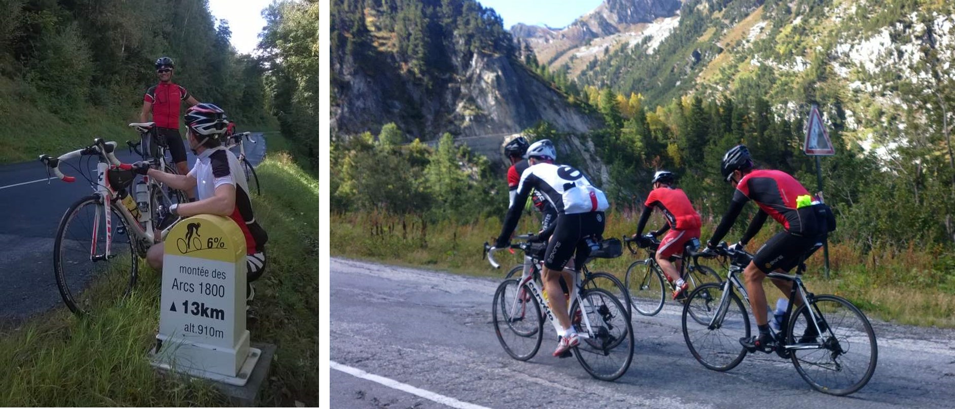 Alemmasta Les Arcsin hiihtokeskuksesta matka jatkui hauskaa pyörätietä lasketellen, kunnes liityimme upeissa alppimaisemissa kiemurtelevaan maantiehen. Tällä kertaa oli maisemia lupa ja aikaa jäädä ihastelemaan.
