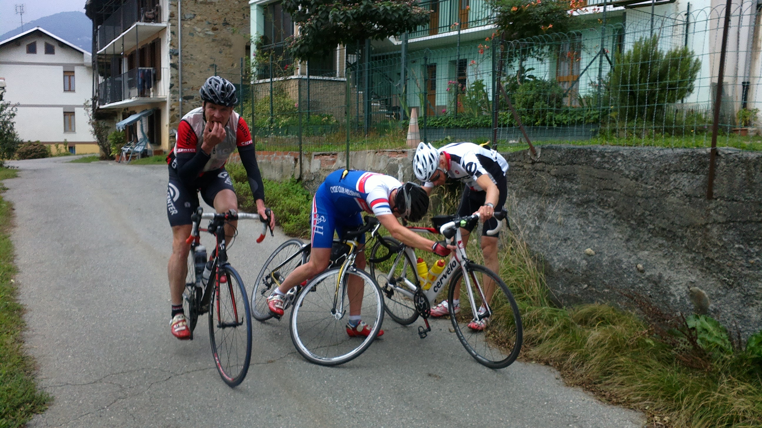 Todella mukavaa ajelua vapaasti siellä täällä. Ja autollekin löydetään kun seurataan kivoja muistiin jääneitä kylänimiä käänteisessä järjestyksessä. Mutta järisyttävä huomio, jonka oivalsin vasta kotona ja putosin penkiltä kuin Jeen-Pier Cusela aikoinaan. Ajoimme kolme tuntia reippaasti ilman suunnitelmaa suur-Torinon lähiöitä, emmekä pysähtyneet liikenteen takia kuin kerran, plus kahta junapuomia kunnioittaen. Jos ajan Helsinkiin, pysähdyn valoihin kaksikymmentä kertaa ja toisenmoisen muun risteävän liikenteen takia. Huhuh, olisikohan Torinossa asuttu ja opeteltu elämään kauemmin kuin Suomessa. Ihmeellistä! Sanokaa te työmatkapyöräilijät onko Helsinki valmis pyöräilykaupunki ? (toki hyvähän se on näin lähiöiden näkökulmasta). Voisi tuumailla että on sitä muitakin hyviä elämisen tapoja kuin suomalainen.Tutustuimme tuolla Mathin-kylässä kahvitellessamme entiseen ammattipyöräilijään 70v. Mukava oli rupatella italiaksi. Kaikki ihmettelivät jälkikäteen kuinka mukava ja ymmärrettävä keskustelu oli. No, toki hetken kuluttua huomasimme että kunkin ymmärtämä tarina oli aikalailla erilainen. Toinen oli jutellut hänen kuudesta pyörästään ja toinen kuudesta vaimostaan. Eli hyvä fiilis voittaa aina tiukat faktat, näin se menee.