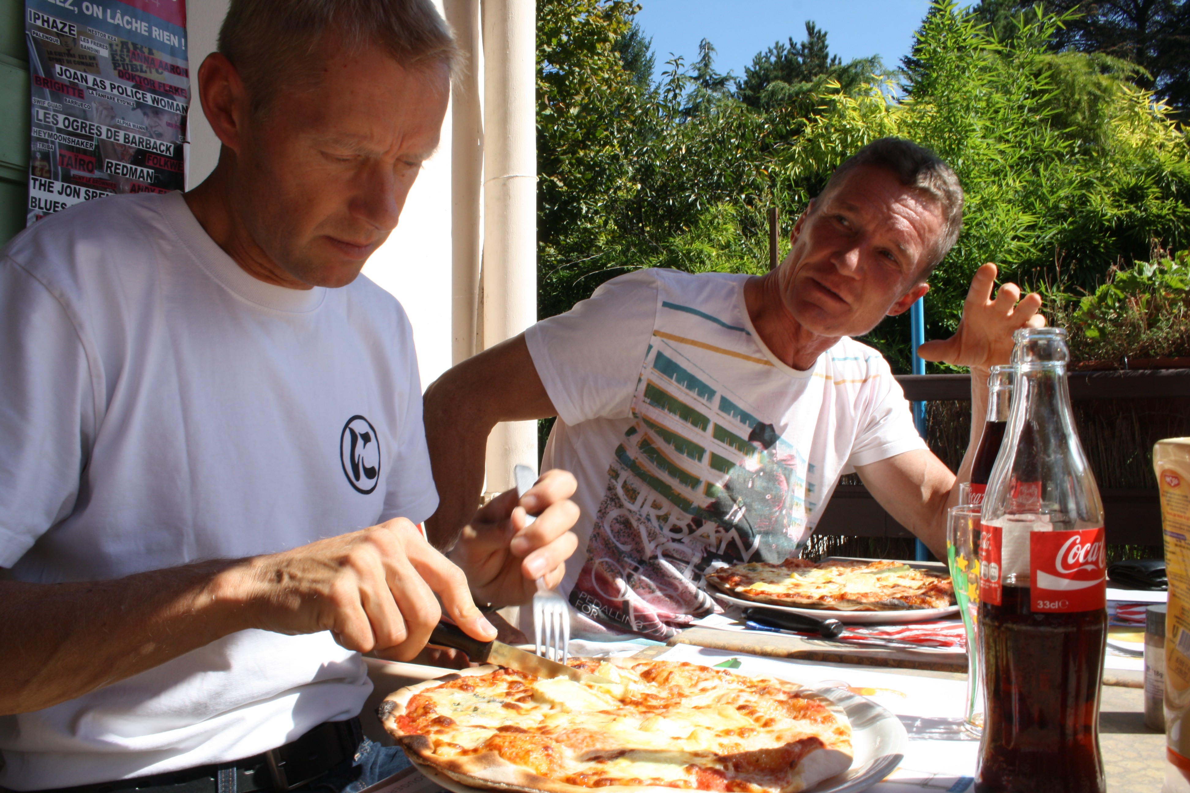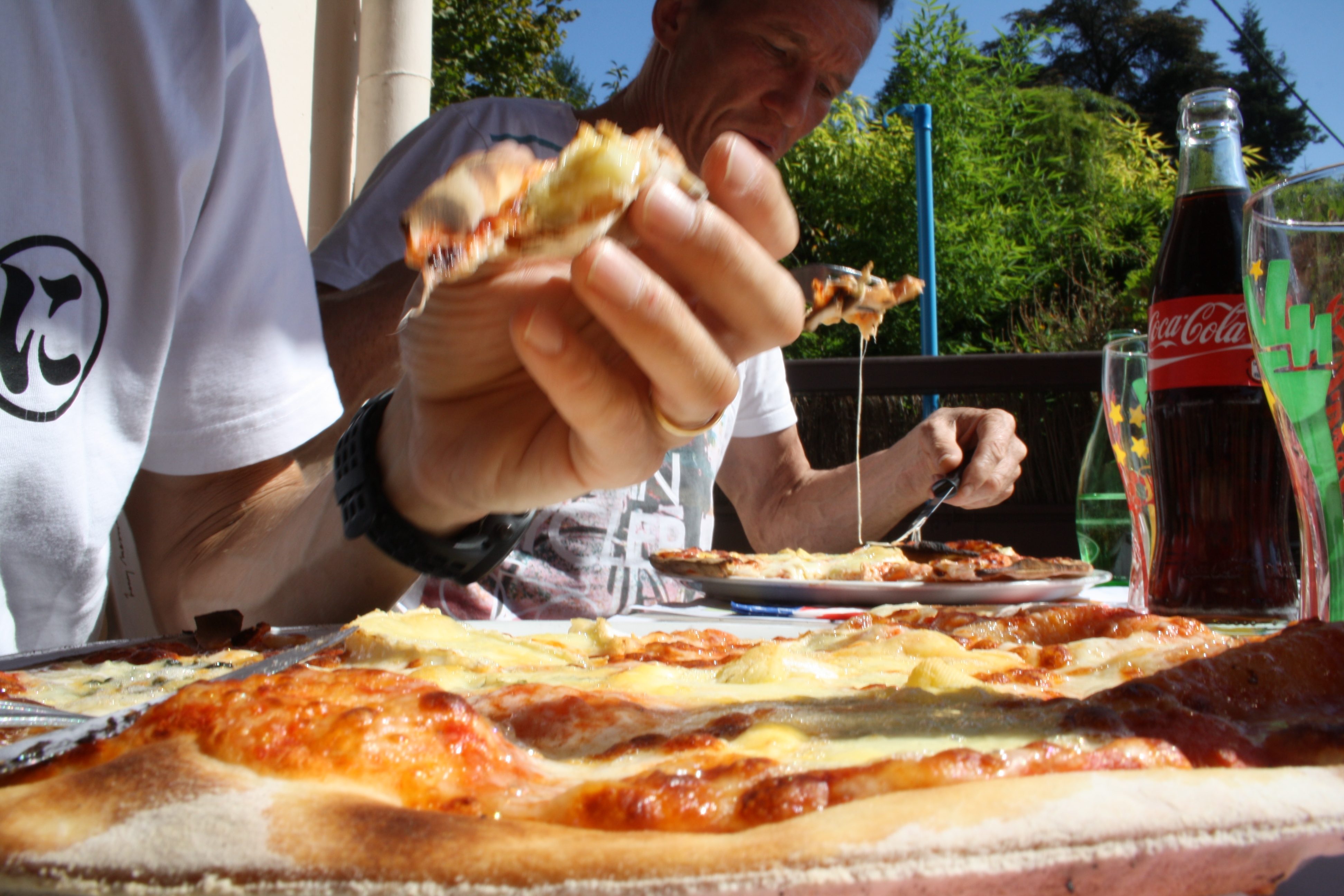 Matkan alkujärjestelyt sujuivat kuin rasvattuina. Aamulento Geneveen saapui etuajassa. Kentältä vuokrattiin etukäteen varattu Ransiitti, johon mahtuivat niin miehet, matkatavarat kuin viisi polkupyörääkin. Neljä pyöristä vuokrattiin ProVelo -liikkeestä Annecysta. Tätä liikettä voimme lämpimästi suositella. Särmää palvelua ja laadukasta tavaraa. Seuraavaksi nopealle lounaalle.