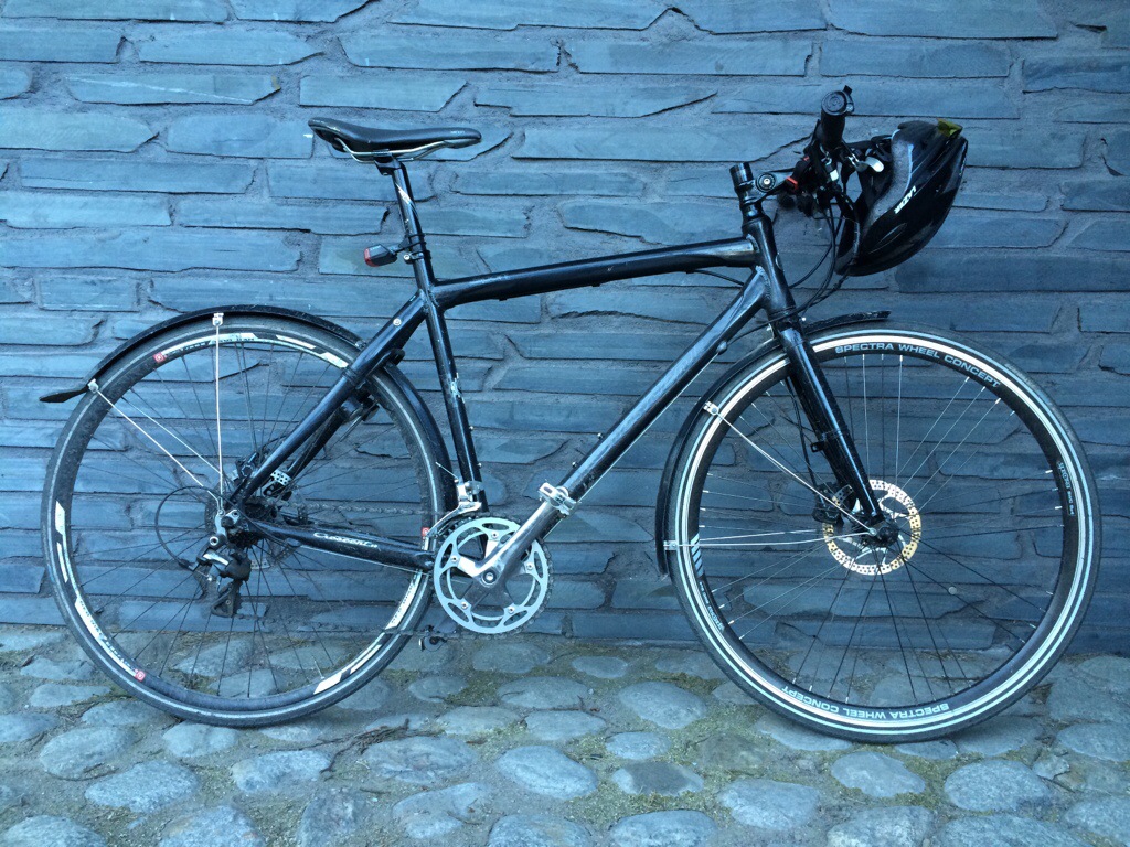 Työmatkapyöräni on teräsrunkoinen hydraulisin levyjarruin ja Ultegra-vaihteistoin varustettu Crescentin suoratankoinen fitness-pyörä.